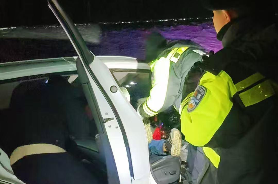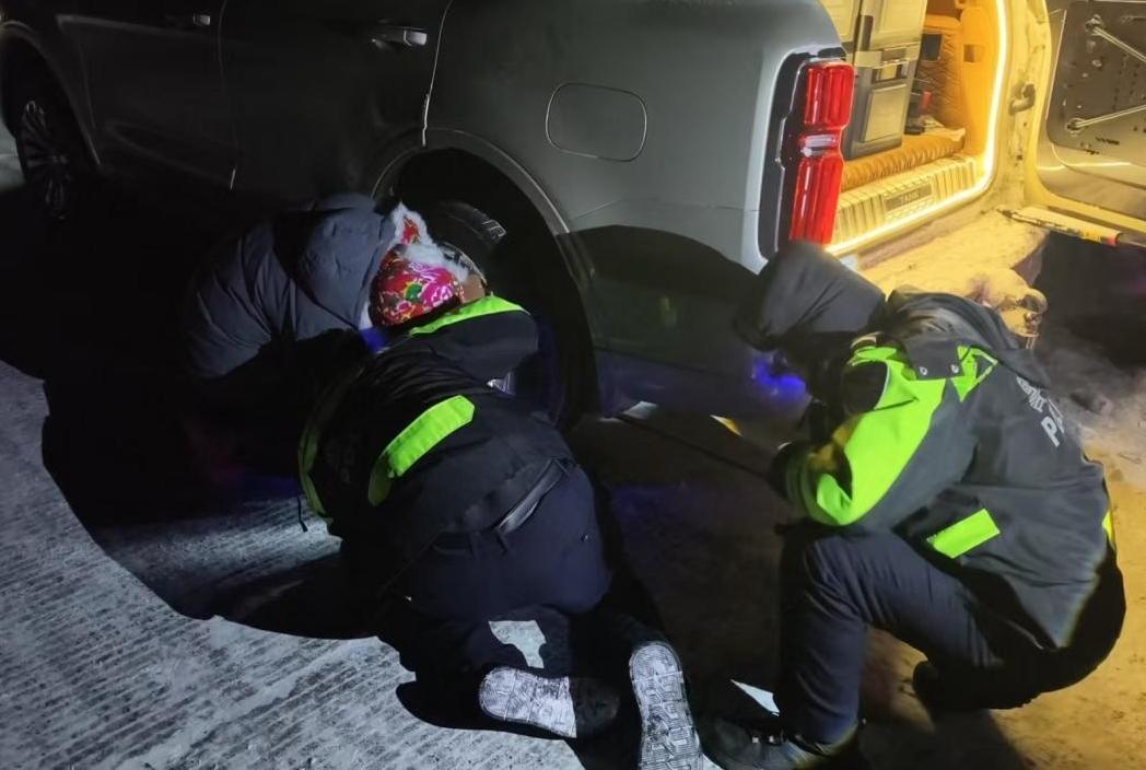 寒夜車輪爆胎 呼瑪交警“警”急救援 暖心服務(wù)顯擔(dān)當(dāng)