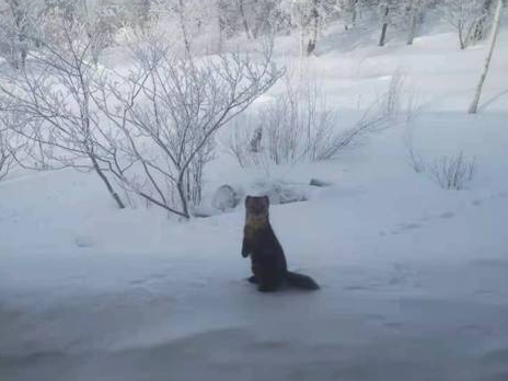 亞雪公路現(xiàn)紫貂覓食 萌態(tài)百出 機(jī)警可愛(ài)