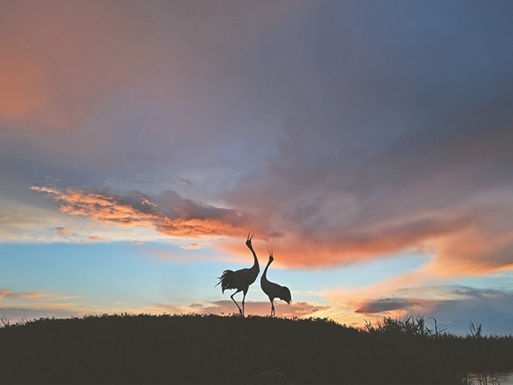 夕陽(yáng)下的丹頂鶴