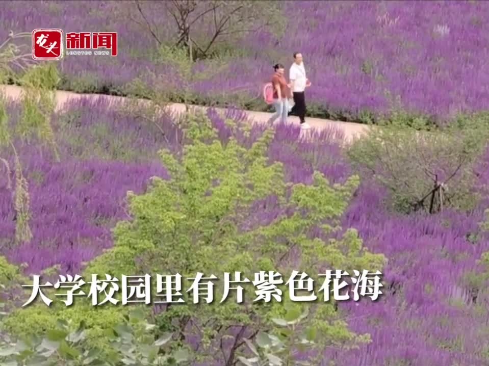 大學(xué)校園里有片紫色花海