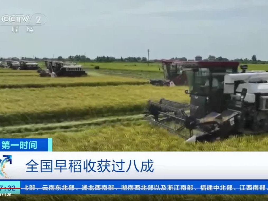 全國早稻收獲過八成