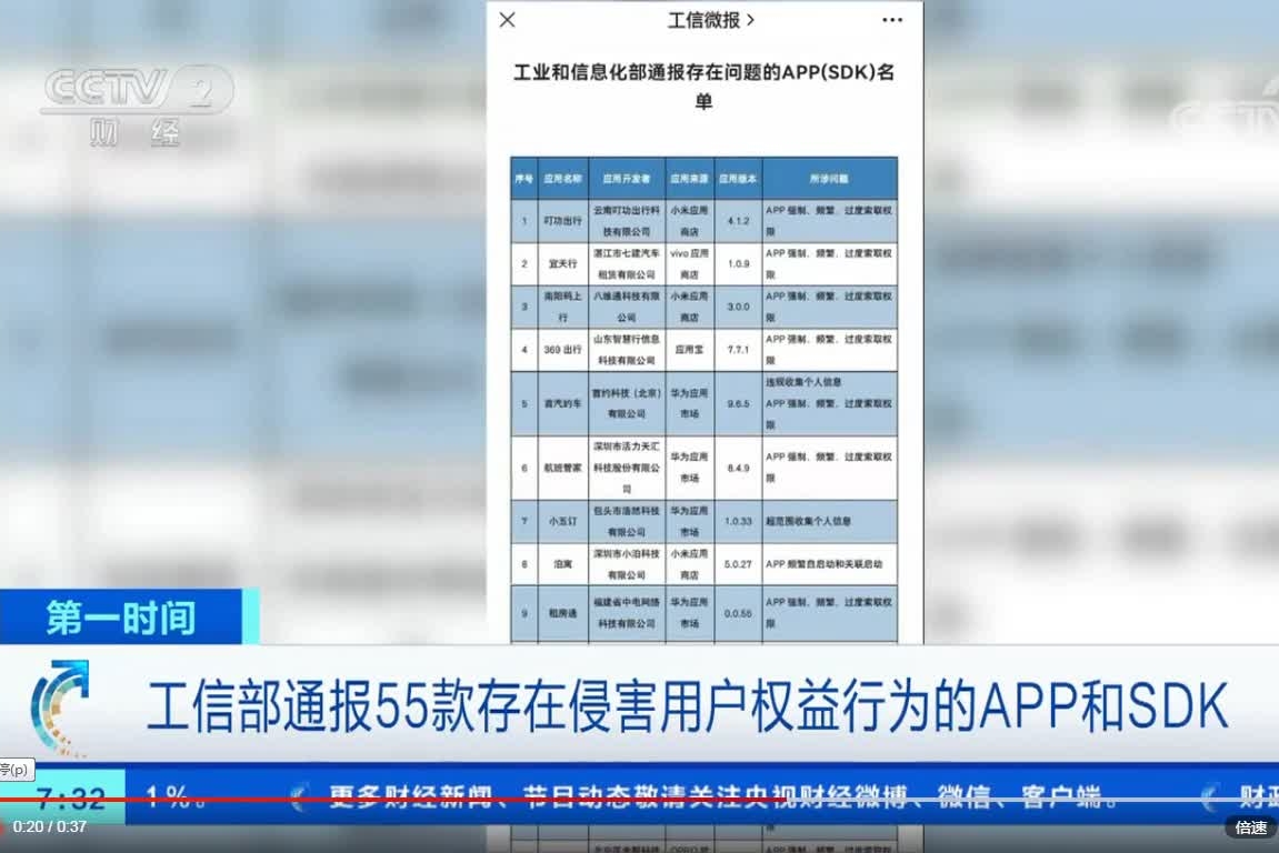 工信部通報55款存在侵害用戶權(quán)益行為的APP和SDK