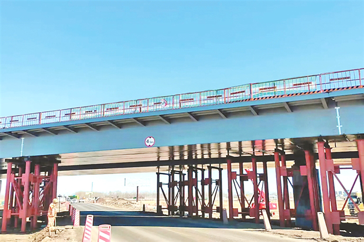 鐵科高速京撫公路跨線橋鋼箱梁架設(shè)完成