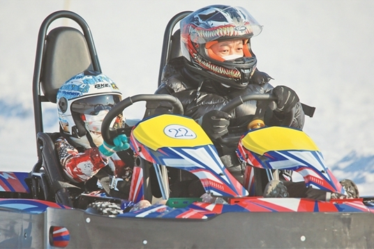 松花江上風(fēng)馳電掣 冰雪汽摩園成游客“新寵”