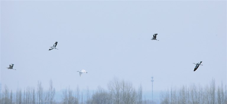 春到北國(guó),候鳥先歸。日前,在哈爾濱市濱水大道附近的松花江江面上,東方白鸛翩翩飛過。
