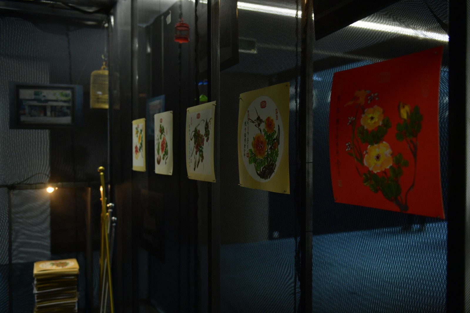 有趣的是,在陳淑瑜與未建筑設(shè)計研究所共同設(shè)計的“迷宮”裝置中,陳淑瑜以策展的方式又介入了耶丁的這段創(chuàng)作經(jīng)歷中。進(jìn)入暗室中的迷宮,觀眾沿著旋轉(zhuǎn)的樓梯向上前行,一路遇到的老照片,帶有時代氣息的畫作,被置于凹陷空間深處的視頻,以及需要置身于“洞穴”中去傾聽的獨白,都昭示著一種極強的私密性,在不見光亮的迷宮中,人們在狹窄而形態(tài)怪誕的通道中甚至無法錯開身來,被迫與他人“分享”私密。