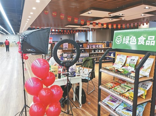 簽約網(wǎng)紅現(xiàn)場直播帶貨。崔佳欣 攝