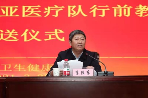 黑龍江省衛(wèi)生健康委黨組成員、副主任李維東作動員講話并為醫(yī)療隊授旗。他要求全體隊員深入貫徹新時代黨的建設(shè)總體工作要求,把“不忘初心、牢記使命”作為持續(xù)加強黨的建設(shè)的永恒課題和黨員干部的終身課題。務(wù)必高度重視疫情防控,做到人物并防、多病同防,疫情防控必須慎終如始,要傳遞好中國抗疫經(jīng)驗,落實好對口醫(yī)院合作機制,推進援助項目創(chuàng)新。并以身邊的抗疫英雄為榜樣,秉承援外醫(yī)療優(yōu)良傳統(tǒng)、弘揚偉大抗疫精神。