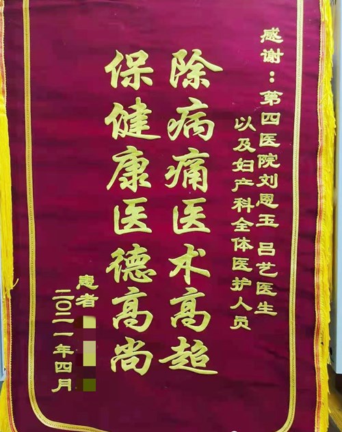 董女士帶著一面錦旗來到了婦產(chǎn)科,表達自己深深的謝意,她說:“感謝四院婦產(chǎn)科對我的幫助,讓我最大限度減少創(chuàng)傷,尤其出院以后的這段時間,主任和呂醫(yī)生也一直關(guān)注我的恢復情況,定期為我換藥,督促我加強護理。我心里特別感激!”