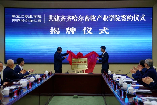 黑龍江經(jīng)濟(jì)網(wǎng)訊(李福山 王鴻儒 記者魏伯勤)為搭建校地校企合作平臺(tái),聚焦產(chǎn)業(yè)人才短板,接軌應(yīng)用型院校人才培養(yǎng)體系,建立產(chǎn)業(yè)人才聯(lián)合培養(yǎng)機(jī)制,4月28日,黑龍江職業(yè)學(xué)院與龍江縣人民政府“共建齊齊哈爾畜牧產(chǎn)業(yè)學(xué)院”簽約儀式在齊齊哈爾市仙鶴賓館舉行。這次簽約是齊齊哈爾市“校企政”合作的一次有益探索,是產(chǎn)業(yè)人才培養(yǎng)、產(chǎn)教融合的新路徑、新載體,是推動(dòng)齊齊哈爾全市畜牧業(yè)高質(zhì)量發(fā)展的一項(xiàng)重要舉措。