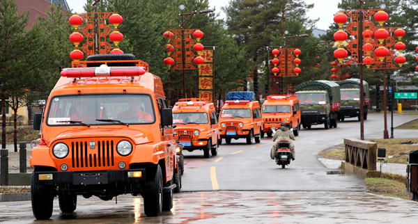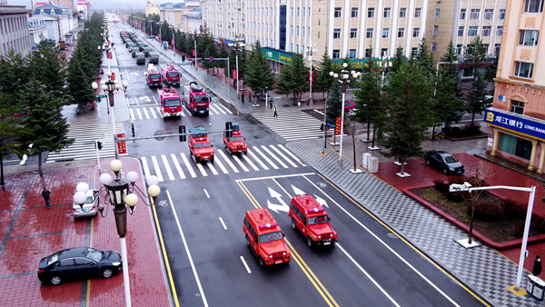 在漠河市城區(qū)主要街道,由防火指揮車、防火宣傳車、防火運(yùn)兵車等33臺(tái)車輛組成的反思巡游車隊(duì),長(zhǎng)鳴防火警報(bào),繞市區(qū)緩慢行駛,通過(guò)聲勢(shì)浩大的宣傳,警醒廣大居民群眾以史為鑒,深刻反思“五?六”火災(zāi)帶來(lái)的慘痛教訓(xùn),讓森林防火時(shí)刻深入人心,嚴(yán)防森林火災(zāi)發(fā)生。在漠河市區(qū)開展巡游活動(dòng)的同時(shí),各鎮(zhèn)也同步組織開展了規(guī)模不同的“五·六”反思警示教育活動(dòng)。