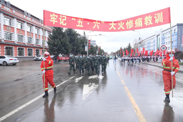 隨后防火警笛鳴起,由消防車、防火運兵車、后勤保障車30余輛機(jī)動車組成的車隊和千余名職工群眾組成的游行隊伍在鎮(zhèn)內(nèi)主要街道繞行一周,營造了濃厚的防火宣傳氛圍。