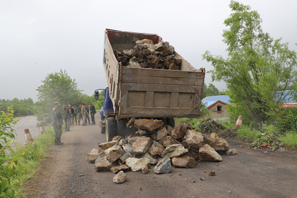 同時,林業(yè)局接到人民街居民求助后,立即調動人員和2臺抽水泵前往救援,并在額木爾河護坡與大壩連接點,用大石頭進行加固,確保大壩安全。