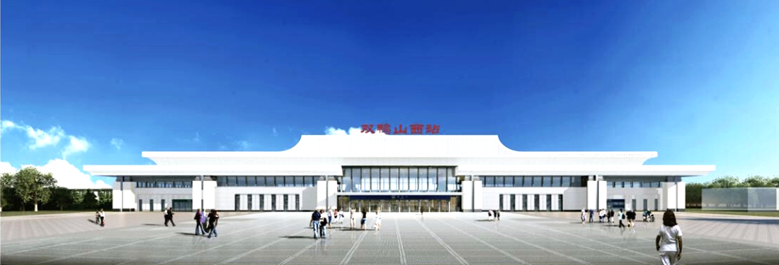 雙鴨山西站建筑面積9997.9平方米,設(shè)2條正線,3條到發(fā)線。以“農(nóng)林盛地,昂揚(yáng)煤城,融匯文脈,合于自然”為設(shè)計(jì)理念。建筑形體通過極強(qiáng)的橫向?qū)哟?,呈現(xiàn)向中心聚集的趨勢(shì),中心高兩側(cè)低類似于山脈的建筑天際線與橫向線條結(jié)合給人以綿延不絕的感覺,寓意城市文化及歷史如山如水般源遠(yuǎn)流長。建筑整體造型著重體現(xiàn)雙鴨山市的煤城特色和豐富的農(nóng)林資源,其煤炭相關(guān)產(chǎn)業(yè)一直作為城市建設(shè)發(fā)展的重要支柱,建筑主立面采用四根厚重有力的支撐柱,以表現(xiàn)這一理念,同時(shí)深入挖掘并體現(xiàn)雙鴨山市特有的文脈及自然特色。