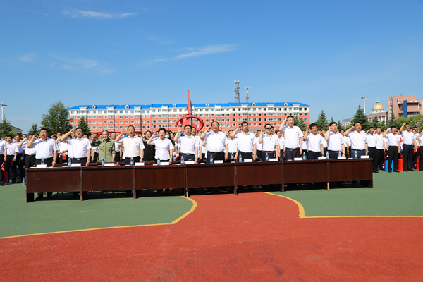 林業(yè)局黨委副書記呂光鑫為慶賀中國共產(chǎn)黨成立100周年致辭。匯演前,舉行了新黨員入黨宣誓及重溫入黨誓詞活動(dòng)。只見鮮紅的黨旗在4名護(hù)旗手的佑護(hù)下走到廊臺(tái)中央,7名新黨員精神飽滿地走上臺(tái),林業(yè)局領(lǐng)導(dǎo)胡守慶、韓鳳泉、呂光鑫、高樹源、劉麗、雄偉、王飛走上臺(tái),為新黨員佩戴黨徽。在場黨員全部起立,面向黨旗莊嚴(yán)宣誓,“我志愿加入中國共產(chǎn)黨……”誓詞的聲音響徹廣場上空。