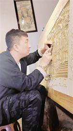 1986年出生的李寶峰,是黑龍江省非物質(zhì)文化遺產(chǎn)保護(hù)項(xiàng)目——北安木雕第四代傳承人,他的作品多次獲得省內(nèi)各類木雕作品大賽獎項(xiàng)。出生于雕刻世家的他,從小和父親學(xué)習(xí)木雕技藝。