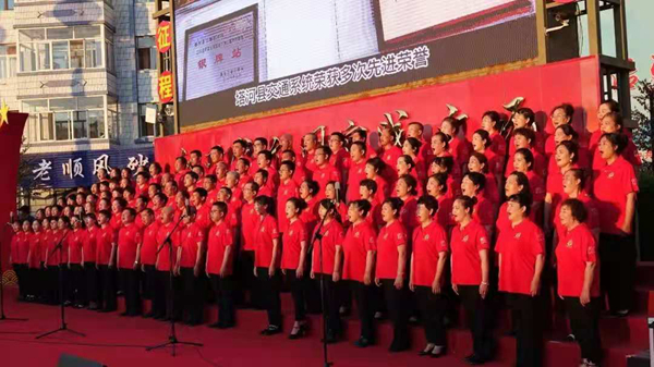 一曲曲動人的旋律蕩氣回腸,一陣陣激昂的歌聲傳遍四方。塔河縣局領(lǐng)導(dǎo)、縣直機關(guān)干部、林業(yè)局職工、公安民警、學(xué)校學(xué)生、老年大學(xué)學(xué)員等紛紛參與其中,表達著共同的祝愿共同的心聲。精彩的表演,讓演出一次次掀起高潮,也贏得了觀眾的陣陣熱烈掌聲。展演歷時近兩個多小時,最后在縣直機關(guān)干部表演的合唱曲目《我的祖國》《保衛(wèi)黃河》那震撼人心的歌聲中圓滿落下帷幕。