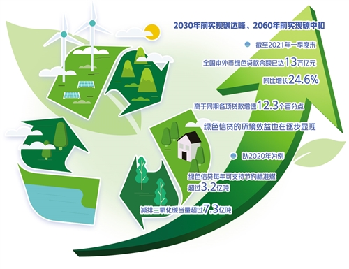 實(shí)際上,近年來我國的綠色金融發(fā)展力度已持續(xù)加大。最新統(tǒng)計(jì)數(shù)據(jù)顯示,截至2021年一季度末,全國本外幣綠色貸款余額已達(dá)13萬億元,同比增長24.6%,高于同期各項(xiàng)貸款增速12.3個百分點(diǎn)。綠色信貸的環(huán)境效益也在逐步顯現(xiàn)。以2020年為例,綠色信貸每年可支持節(jié)約標(biāo)準(zhǔn)煤超過3.2億噸,減排二氧化碳當(dāng)量超過7.3億噸。