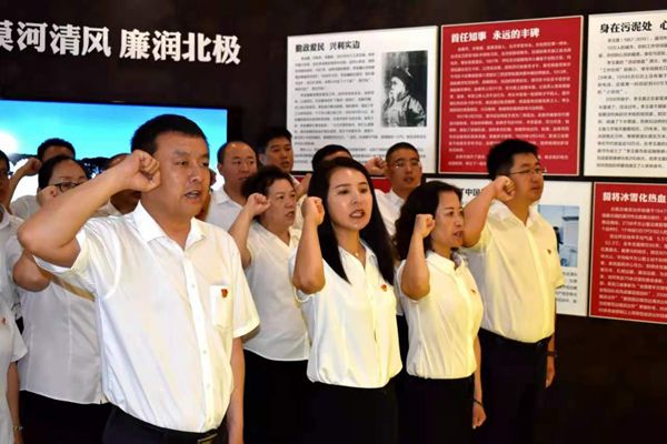 在漠河市廉政教育基地,塔河林業(yè)局研學(xué)交流團(tuán)成員在講解員生動(dòng)的講解下,依次參觀了“以古鑒今 廉潔中華”、“正風(fēng)肅紀(jì) 馳而不息”、“前車(chē)之鑒 警鐘常鳴”、“清正為民 廉潔風(fēng)范”四個(gè)篇章。通過(guò)一個(gè)個(gè)觸目驚心的腐敗案例、一幅幅發(fā)人深省的圖片和當(dāng)事人的懺悔實(shí)況錄像,對(duì)現(xiàn)場(chǎng)每一個(gè)人給以強(qiáng)烈的心靈震撼,進(jìn)一步提高了大家對(duì)反腐倡廉重大意義的認(rèn)識(shí)和感悟,筑牢防腐拒變思想防線。在深受警示教育的同時(shí),研學(xué)交流團(tuán)全體黨員干部高舉右拳,面對(duì)黨旗莊嚴(yán)宣誓,重溫入黨誓詞,并在“廉潔宣誓化于心,廉潔承諾重于行”橫幅上鄭重簽下自己的名字,表達(dá)了一定要樹(shù)牢不忘初心、勇?lián)姑?、廉潔從政的信念和決心。
