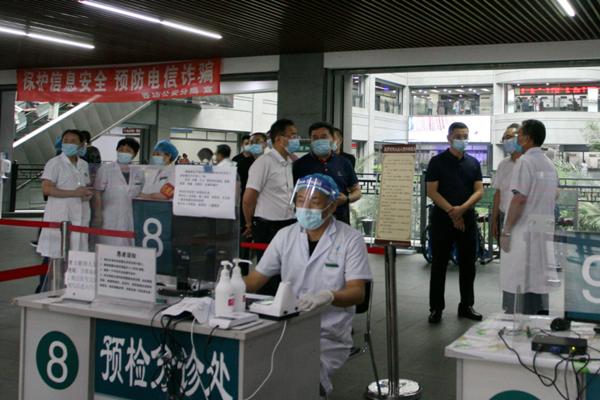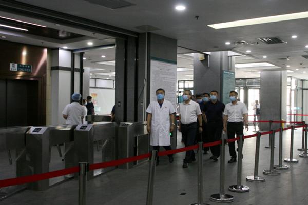 趙煒明一行先后到附屬第一醫(yī)院門診預(yù)檢分診處、呼吸科門診、耳鼻咽喉科門診、心血管病一科病房等處進(jìn)行實地檢查,并聽取附屬第一醫(yī)院黨委書記李建民關(guān)于院感防控工作的詳細(xì)匯報。