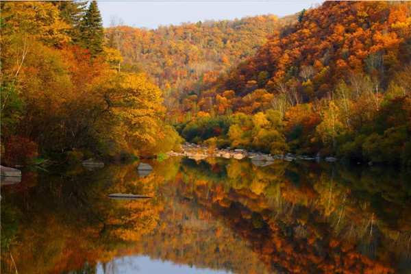 到上甘嶺溪水國家森林公園趕一場葉的盛會。橙黃與火紅銜接的恰到好處,只是一樹色彩,便足以讓人感嘆:伊春的秋啊,怎么那么美。