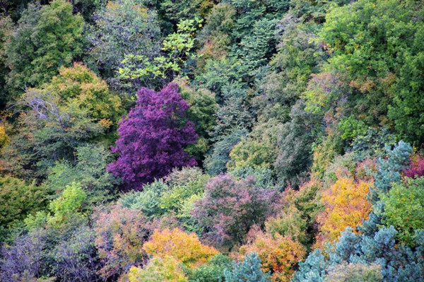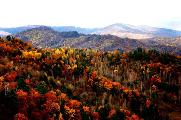 一樹一景都是它的作品,染紅楓葉,點黃白樺,為紅松再添蒼翠,將五彩林都繪就。