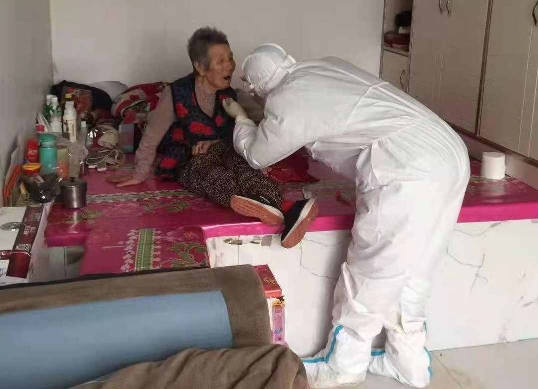 徐晶、劉建新、李也,三人來(lái)自醫(yī)院不同的科室,但是這次她們有了共同的目的,組成了一個(gè)三人核酸采集小分隊(duì),在后山鄉(xiāng)各個(gè)鄉(xiāng)道進(jìn)村采集核酸,汽車過(guò)不去,徐晶告訴村民我們可以步行進(jìn)村,但是路程還是有些偏遠(yuǎn),步行時(shí)間慢,樸實(shí)的村民開來(lái)自家的農(nóng)用三輪車,拉著她們仨進(jìn)了村。在當(dāng)?shù)卮迕竦娜ε浜舷拢朔浅D醯貫榇蠹壹皶r(shí)采集了核酸,經(jīng)過(guò)8個(gè)小時(shí)的奮戰(zhàn),三人沒(méi)有一人喊苦喊累,不吃不喝,不去衛(wèi)生間,共同完成了755人的核酸采集工作。據(jù)了解,省醫(yī)院十一病區(qū)護(hù)士徐晶去年還參加過(guò)援鄂醫(yī)療隊(duì),她愛人也在省醫(yī)院工作,倆人同為醫(yī)務(wù)工作者,也同為黨員,此次抗疫同時(shí)選擇了舍小家、顧大家,把年幼的孩子留給老人,共同走向了抗疫戰(zhàn)場(chǎng)。