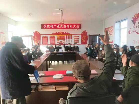 在駐村工作隊(duì)的助力下,漢族村通過(guò)裝載機(jī)、鉤機(jī)設(shè)備出租等扶貧產(chǎn)業(yè)項(xiàng)目共計(jì)收入25萬(wàn)元,其中5萬(wàn)元用于此次漢族村產(chǎn)業(yè)受益分紅。分紅大會(huì)上,參與本次大會(huì)的73戶(hù)村民共同舉手表決同意分配結(jié)果,確認(rèn)結(jié)果無(wú)異議后,依次簽署了資產(chǎn)收益增收協(xié)議。通過(guò)此次分紅大會(huì),廣大村民群眾嘗到了村集體經(jīng)濟(jì)發(fā)展的“第一口蜜”,生活的“甜度”實(shí)現(xiàn)了階梯式上升,生活的“溫度”完成了遞進(jìn)式改變。