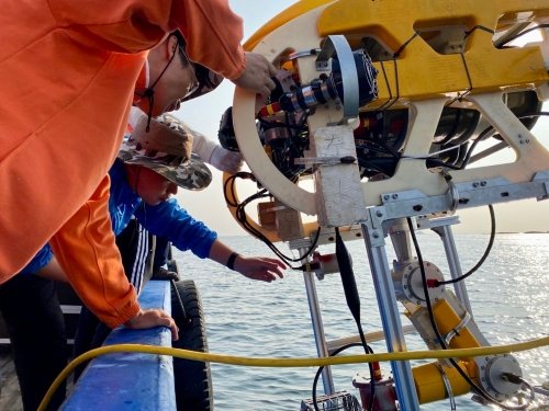 團隊成員在海上進行試驗