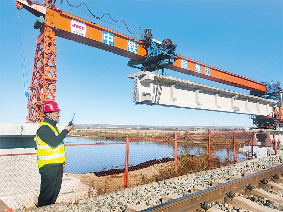 據(jù)介紹,前不久北黑鐵路升級(jí)改造工程新建24座鐵路橋中的另一座孫吳段大河口中橋架梁已經(jīng)完成。橋梁位于孫吳縣境內(nèi),橋長112.73米,孔跨布置為3×32米,下部結(jié)構(gòu)和T梁預(yù)制施工由中鐵十局完成,梁體架設(shè)由中鐵十六局集團(tuán)第五工程有限公司負(fù)責(zé)完成。
