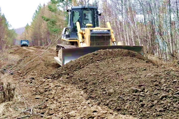 走進大興安嶺林業(yè)集團公司阿木爾林業(yè)局1—4線,就會看到火熱的勞動場面,只見大型翻斗車輛滿載砂石料蹣跚而過,伴隨著推土機的轟鳴聲,剛卸掉的砂石料很快被鏟平,道路在職工的辛勤工作下,一步步變寬、一步步向前延伸。