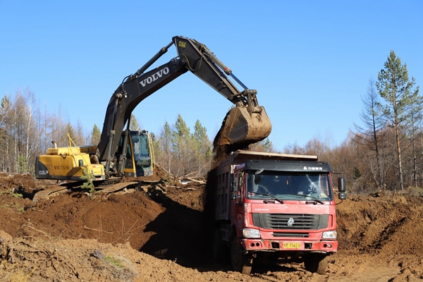 圖為阿木爾林業(yè)局多種經(jīng)營公司在取料場裝載砂石料,養(yǎng)護1—4線
