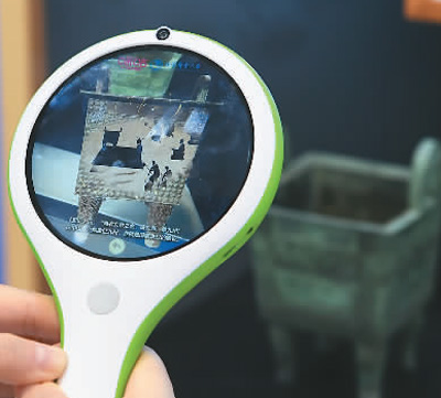 第十七屆中國(深圳)國際文化產業(yè)博覽交易會上,眾多參展團帶來5G、物聯(lián)網等共性技術在文化產業(yè)領域的集成應用和創(chuàng)新。圖為參觀者用“AR探究鏡”掃描文物模型,了解文物信息。新華社記者 毛思倩攝