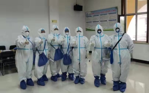 自2020年1月感染內科全體醫(yī)護承擔起發(fā)熱門診此項艱巨任務,一樓設立為發(fā)熱門診留觀室,二樓為核酸未出結果者緩沖病房,三樓、四樓為核酸陰性但尚未解除隔離的留觀病房。此次根據疫情防控要求,在原本樓層多,醫(yī)護工作“戰(zhàn)線”長的情況下,還特別設立了“巴彥”疫區(qū)專屬樓層。來自風險區(qū)患者就診時,在隔離區(qū)的一名醫(yī)生和一名護士每個班次經常工作6-8小時,樓上樓下的反復奔走,裹著密不透氣的防護服,汗水濕透衣背。長時間的不能喝水吃飯如廁,挑戰(zhàn)人體生理忍耐極限,但從未有人叫苦委屈。白班的同志在結束日間工作后,為了解決科室人員少,且工作量大的情況,主動留下加班到很晚,而第二天還要支援社區(qū)全員核酸采集任務。