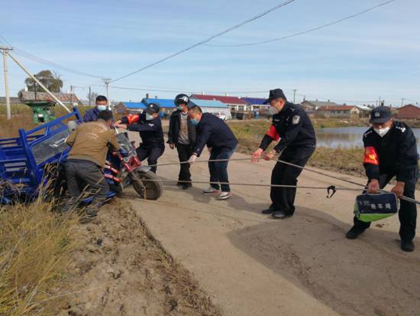 巴彥縣出現(xiàn)疫情后,哈爾濱市公安局航運分局副局長井立軍帶領(lǐng)41名來自航運分局、地鐵分局、禁毒支隊的戰(zhàn)友們,在巴彥農(nóng)村疫情災(zāi)區(qū)走鄉(xiāng)鎮(zhèn)進村屯、查卡點看秋收,用頑強的意志、過硬的膽識,漂亮地打贏了一場巴彥農(nóng)村疫情防控阻擊戰(zhàn)。截至目前,哈爾濱市公安局駐巴彥農(nóng)村防疫工作組共協(xié)助維護核酸檢測點秩序3028處、檢查村屯卡點2015處、整改存在管理問題村屯卡點103處、整改存在安全隱患居家隔離點437戶,勸阻私自出門秋收等人員862人,監(jiān)督處置有害垃圾、病死牲畜等事件33起,為全面阻斷巴彥農(nóng)村疫情蔓延奠定了堅實基礎(chǔ)。
