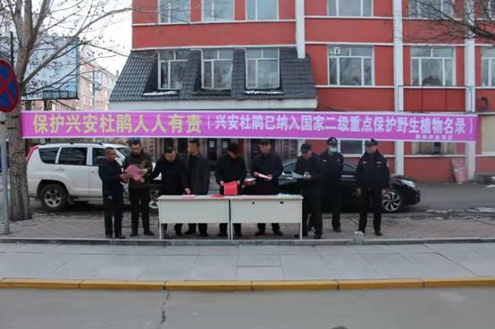 會后,所有與會人員參加了由森林資源管理科舉辦的“保護(hù)野生興安杜鵑人人有責(zé)”宣傳活動,對快遞公司、山產(chǎn)品店、檢查站、配貨站、市場及過往車輛進(jìn)行宣傳,并呼吁經(jīng)營業(yè)主參與到保護(hù)野生興安杜鵑行動中來,不收購、不運(yùn)輸、不銷售野生興安杜鵑,堅(jiān)決把牢物流運(yùn)輸關(guān)口。