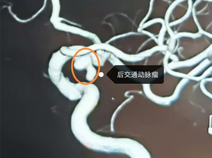 據(jù)省醫(yī)院神經(jīng)外一科孫國章副主任介紹,張大娘是一位聾啞人,今年69歲,在臨近中秋節(jié)的時候突然出現(xiàn)不明原因的輕微頭痛,當(dāng)時家屬并未太過在意,但是三四天之后,張大娘就出現(xiàn)了右側(cè)眼睛睜不開的癥狀,家人這才領(lǐng)著張大娘前往黑龍江省醫(yī)院就診。張大娘入院時,已經(jīng)有頭痛、眼瞼上提障礙等表現(xiàn),很有可能是后交通動脈瘤導(dǎo)致,隨即給予張大娘完善了頭部CT平掃及CTA血管檢查。果然,頭部CTA檢查明確顯示右側(cè)頸內(nèi)動脈-后交通段有動脈瘤樣異常凸起,動脈瘤導(dǎo)致相鄰的動眼神經(jīng)受壓,引發(fā)動眼神經(jīng)麻痹,才讓張大娘出現(xiàn)了眼睛不能睜開的癥狀。