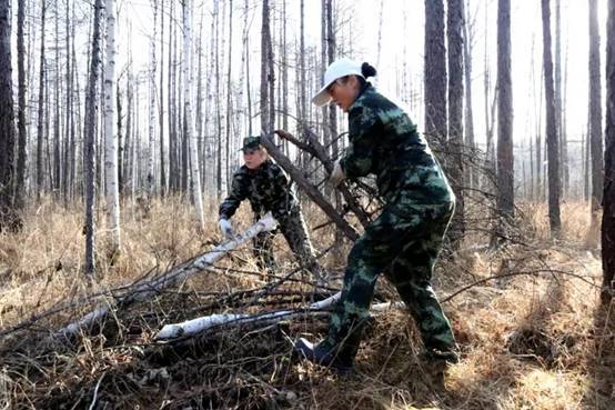 在撫育作業(yè)現(xiàn)地,寒冷的風(fēng)吹拂著干部職工的面龐,腳下過膝高的雜草直往鞋里鉆,一不小心就會(huì)踩進(jìn)冰冷的積水中。雖然工作環(huán)境較為艱苦,可沒有一個(gè)人掉隊(duì)退出,大家沒有牢騷,沒有埋怨,認(rèn)真撿拾著被壓木、腐朽木、枯死木、站桿、藤條及老舊伐根等影響中幼林生長的木材。雖然機(jī)關(guān)干部職工大多數(shù)人以前都沒有從事過森林撫育工作,但經(jīng)過前期培訓(xùn)和現(xiàn)地實(shí)踐,大家對(duì)撫育技術(shù)操作要領(lǐng)很快掌握嫻熟,一字排開有序地清林歸堆,彼此間默契呼應(yīng),不一會(huì)現(xiàn)地就出現(xiàn)了橫山碼放整齊的枝丫堆。