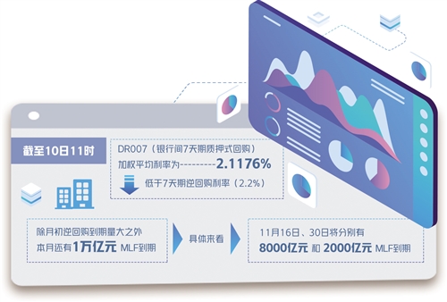 數(shù)據(jù)顯示,11月1日至5日,共計(jì)1萬億元規(guī)模的逆回購(gòu)陸續(xù)到期。除月初逆回購(gòu)到期量大之外,本月還有1萬億元MLF到期,為今年以來最高值。具體來看,11月16日、30日將分別有8000億元和2000億元MLF到期。