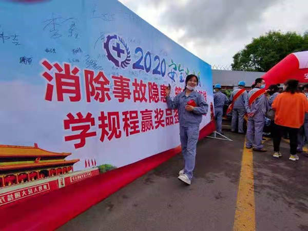利用“安全生產(chǎn)月”和“安全生產(chǎn)龍江行”活動(dòng)開展之機(jī),組織安全生產(chǎn)月主題宣傳、學(xué)規(guī)程贏獎(jiǎng)品、主題演講比賽、為安全生產(chǎn)獻(xiàn)計(jì)獻(xiàn)策活動(dòng)、直擊現(xiàn)場(chǎng)應(yīng)急處置知識(shí)抽查、安全事故警示片觀看、應(yīng)急救援和CPR救護(hù)比武、300平燒結(jié)作業(yè)區(qū)皮帶著火事故應(yīng)急演練、二級(jí)主管公開課、安全知識(shí)競(jìng)賽等11個(gè)安全活動(dòng),制作板報(bào)49塊、標(biāo)語(yǔ)84個(gè)、橫幅55條、彩虹門3個(gè)、景觀4處、展板、彩旗、飄旗等宣傳用品,讓濃濃的安全教育氛圍時(shí)刻影響著每名員工。