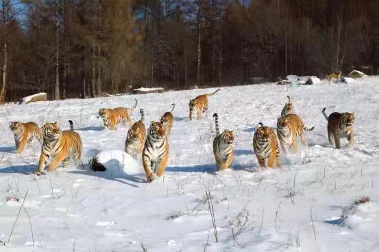 令人震撼的鏡泊湖吊水樓的冰瀑是牡丹江冬季的重要景點(diǎn)之一。在冰凌交錯(cuò)、銀裝素裹的純凈世界里,世界吉尼斯紀(jì)錄創(chuàng)造者——中國懸崖跳水奇人狄煥然,在零下二十多度的鏡泊湖吊水樓冰瀑上,伸展雙臂,凌空一躍,撲向不結(jié)冰的黑龍?zhí)端?,跳入落差?0米的水中,成為鏡泊湖景區(qū)冬季的一道獨(dú)特景觀。鏡泊湖水系水質(zhì)較好,水產(chǎn)資源極為豐富,大約有六十多種魚,冬季體驗(yàn)鏡泊湖的大網(wǎng)捕魚、小網(wǎng)掛魚,在每年辭舊迎新之際看一場冬捕,絕對是預(yù)示著年年有余好兆頭的絕佳體驗(yàn)。在漁夫們高亢的號子聲中,800多米長的大網(wǎng)從冰洞中漸漸滑出,胖頭魚、鯽魚、鯉魚等翻滾著、跳躍著,冒著熱氣蹦到冰面,“萬尾鮮魚出玉門”的奇觀景象讓人感嘆不已。橫道東北虎林園是世界上最大的東北虎人工飼養(yǎng)繁育基地和野化訓(xùn)練基地。在幾代養(yǎng)虎人的辛勤努力下,已繁育活體東北虎1100余只,建有猛虎園、靈長類館、幼虎生態(tài)館、高空玻璃棧道、珍稀動(dòng)物觀賞園、科普展覽館、觀虎長廊、虎文化廣場等多個(gè)景點(diǎn)。在這里,可以感受到獸中之王奔跑在蒼茫林海雪原的風(fēng)馳電掣。也可以感受到成群東北虎躺臥在皚皚白雪“互談心事”的百般愜意,還可以領(lǐng)略到虎牛相斗、群虎撲食的驚險(xiǎn)刺激。
