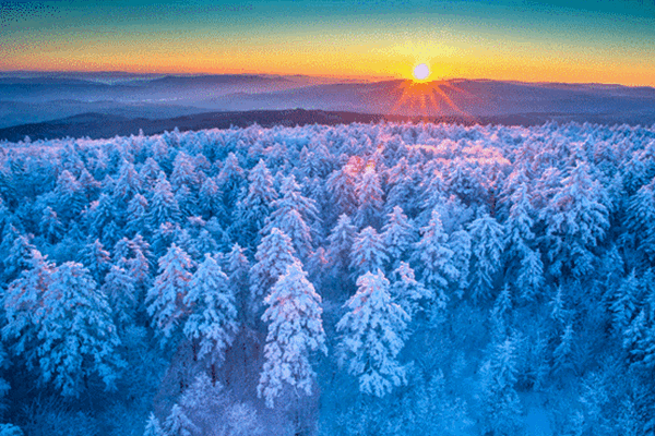 伊春擁有400萬公頃的浩瀚森林,高達(dá)83.8%的森林覆蓋率,交相輝映的茫茫林海與皚皚白雪,萬里冰封、壯美遼闊的小興安嶺,構(gòu)成了這個(gè)冬天最浩瀚壯美的景色。夏季的天然氧吧,在冬季化為了冰雪童話世界。大雪過后,五營國家森林公園之中,千樹萬樹猶如梨花盛開,描繪著冬日的醉人景象。