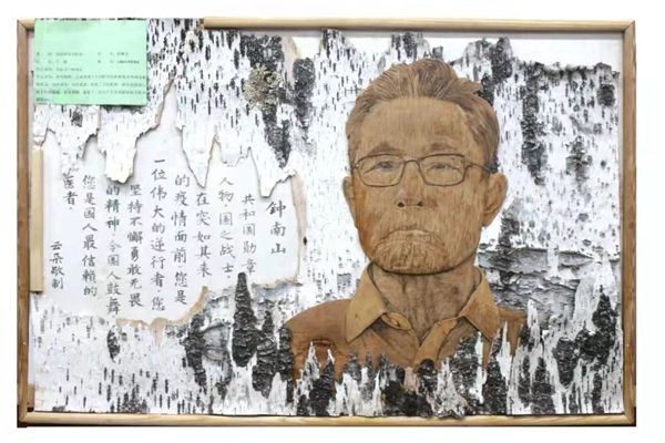 作品“生命衛(wèi)士鐘南山”采用大興安嶺原始森林優(yōu)質(zhì)樺樹皮粘貼而成,畫中鐘南山院士表情凝重,目光堅毅,展現(xiàn)了一名共產(chǎn)黨員面對疫情無私奉獻(xiàn)的決心。作品“蘭閨雅集圖”,情致盎然、祥和靈動,給人以和諧、溫馨,讓人心生美好。
