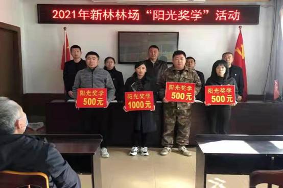 圖為新林林場(chǎng)班子成員為職工發(fā)放陽(yáng)光獎(jiǎng)學(xué)金(楊光 攝)