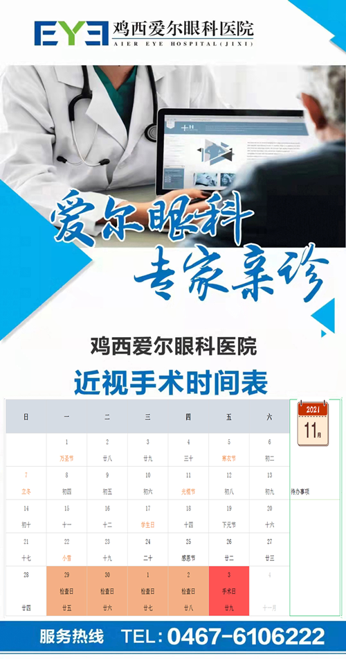 雞西愛爾眼科醫(yī)院近視手術(shù)時間表: