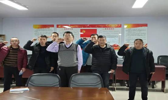 在中國共產黨入黨誓詞展示墻前,黨員干部們面向黨旗,高舉右手,重溫了入黨誓詞,我志愿加入中國共產黨,擁護黨的綱領......隨時準備為黨和人民犧牲一切,永不叛黨。回憶入黨過程加固不忘初心、牢記使命,永葆共產黨員政治本色的堅定政治信念。