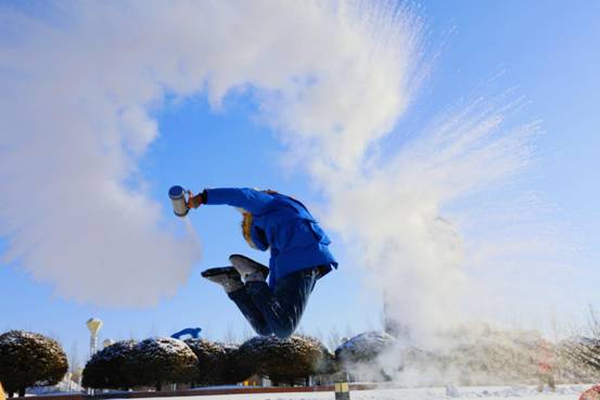 在三江口生態(tài)旅游區(qū)觀光塔上觀賞北國風光、千里冰封、萬里雪飄的壯美景觀,體驗潑水成冰的神奇感受,將冰花四濺的瞬間捕捉在鏡頭中,印刻在腦海里。