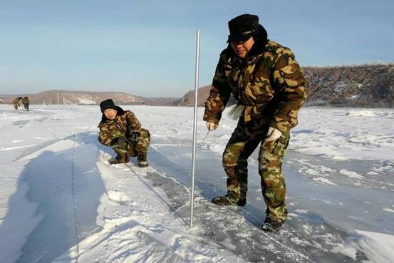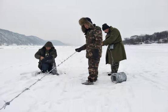 為進(jìn)一步做好防境外疫情輸入工作,最大限度的保護(hù)好人民群眾的生命健康安全,當(dāng)?shù)卣疀Q定在界江沿線架設(shè)防疫隔離墻,阻擋境外物種帶入病毒。紅星林場在接到任務(wù)后,迅速組織人力物力投入戰(zhàn)斗。冰封的江面在冬季暗藏危機(jī),看似一平如鏡的冰下有很多封凍時(shí)形成的漏斗,白雪覆蓋下的區(qū)域更是潛藏著無數(shù)的冰縫,一腳踏進(jìn)去就會造成嚴(yán)重的扭傷,而在冰面上放線拉網(wǎng)需要每天抬著幾十斤的鐵蒺藜線軸往返十幾里路程,行進(jìn)在冰面路段上一步一滑,加固鐵線時(shí)還要時(shí)刻小心不被鐵蒺藜劃傷,鉆孔、插樁也要時(shí)刻防止產(chǎn)生大面積的冰裂。