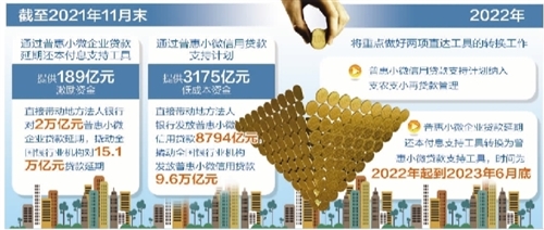 數(shù)據(jù)顯示,截至2021年11月末,人民銀行通過(guò)普惠小微企業(yè)貸款延期還本付息支持工具,提供了189億元激勵(lì)資金,直接帶動(dòng)地方法人銀行對(duì)2萬(wàn)億元普惠小微企業(yè)貸款延期,撬動(dòng)全國(guó)銀行業(yè)機(jī)構(gòu)對(duì)15.1萬(wàn)億元貸款延期。人民銀行通過(guò)普惠小微信用貸款支持計(jì)劃提供3175億元低成本資金,直接帶動(dòng)地方法人銀行發(fā)放普惠小微信用貸款8794億元,撬動(dòng)全國(guó)銀行業(yè)機(jī)構(gòu)發(fā)放普惠小微信用貸款9.6萬(wàn)億元,取得了明顯的效果。