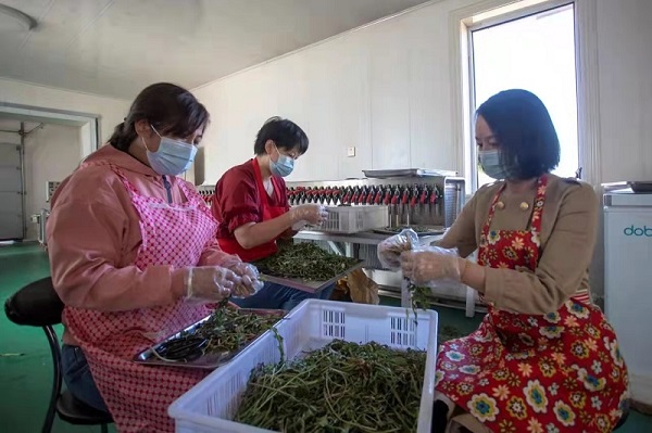 新林林業(yè)局翠崗林場職工利用自制茶品工作臺制作“心花怒放”“君子好球”主題系列手工茶品(劉琦 攝)